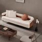 Contemporary Minimalist Sofa – Cream Upholstery with Rolled Arms and Accent Pillows